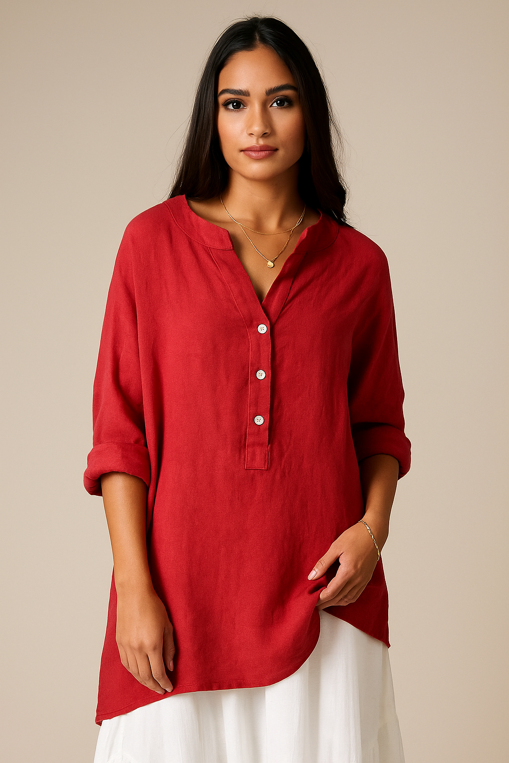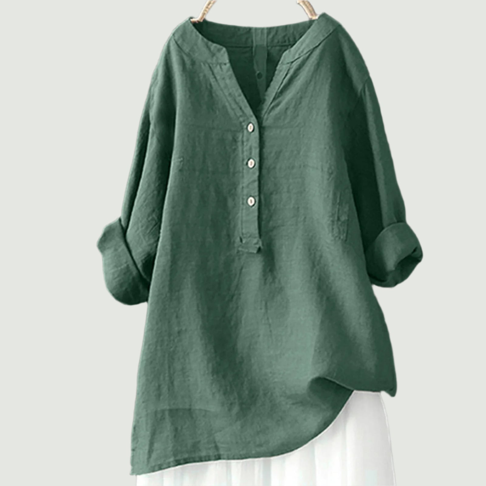 Sanna toppen er lavet af åndbart hør, som føles blødt og holder dig kølig på varme dage. Den løstsiddende pasform gør den nem at bevæge sig i, uden at den strammer. Uanset om du skal på stranden, gå en tur eller nyde en middag, passer denne top til både krop og anledning.